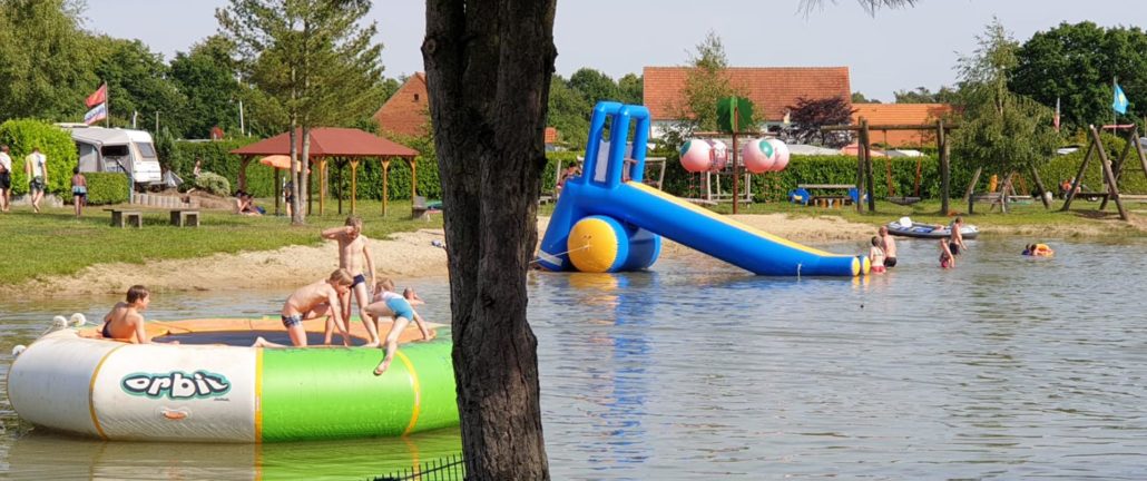 - Kinderfreundlicher Badesee mit Seilbahn, Floß und Badeinsel